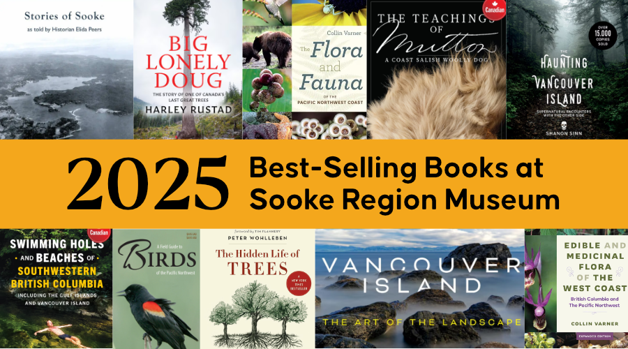Happy New Year Sooke Region! People who visit us are buying local history, guide books for plant and animal identification and local travel with a juicy nod to the continued popularity of a good ghost story. Here is a list of our best-selling books last year: